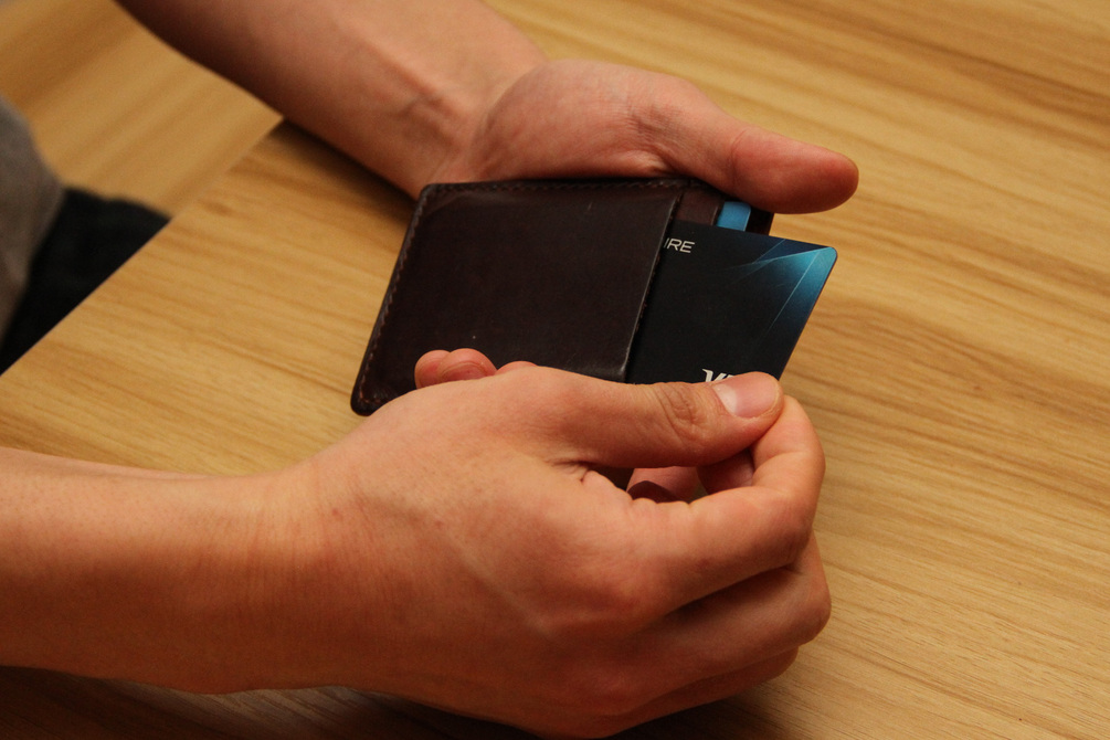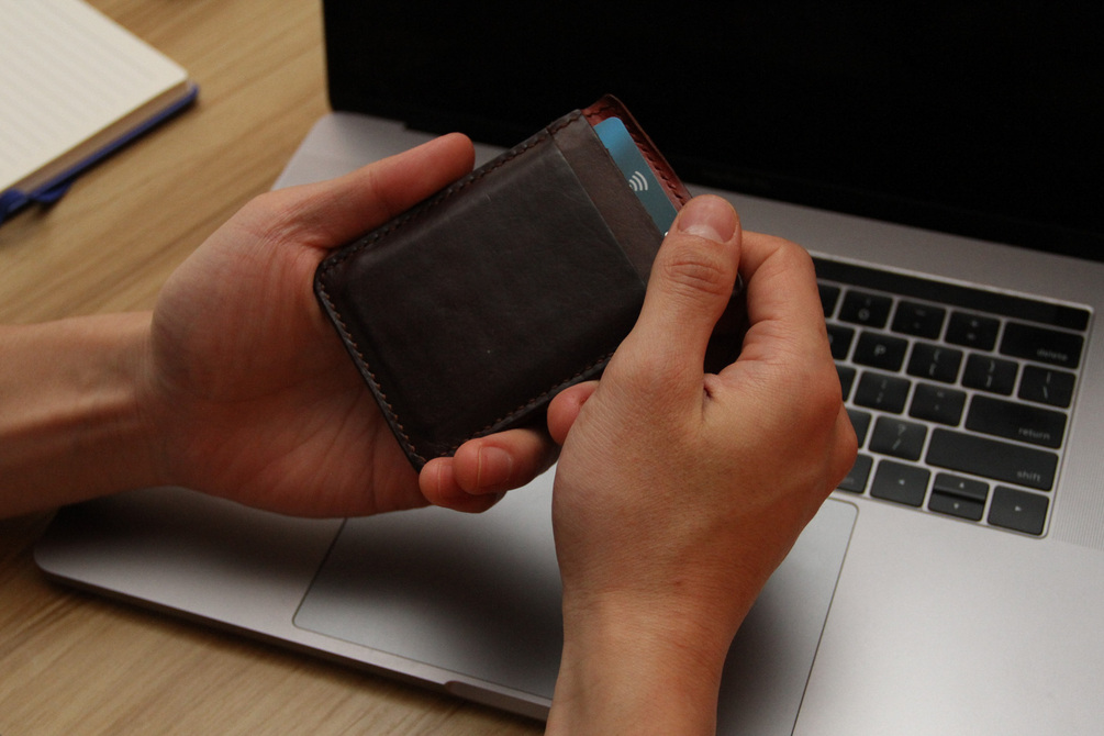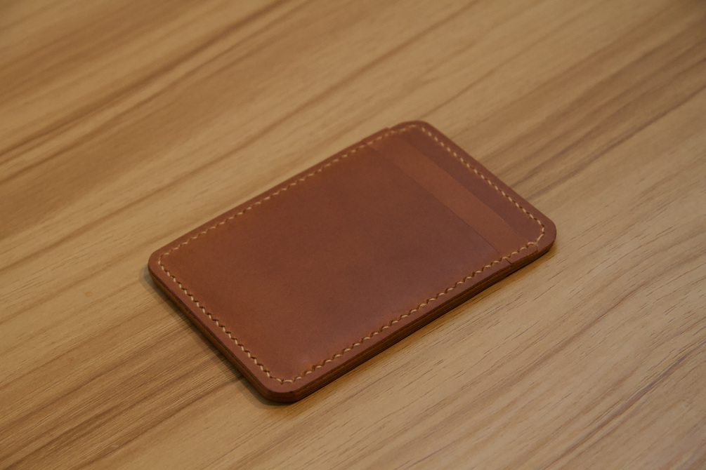 The cardholder is entirely handmade with traditional saddle stitch(hand-stitched) with thick thread for decades of use for your own leather goods, the only one in the world.
